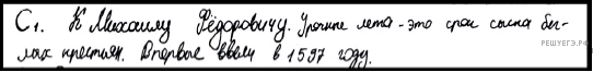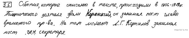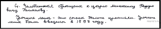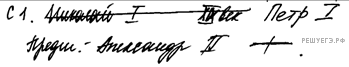 Оба императора названы неправильно, годы правления Николая I не указаны. Обратим внимание, что выпускник сначала правильно указал императора, который выступил с данной речью, но затем зачеркнул ответ. Конечно, согласно критериям за указание только Николая I он бы не набрал баллов. Но даже, если бы он правильно указал и годы правления Николая I, а потом их тоже зачеркнул, то также не получил бы баллов за задание. Зачеркивание ответа означает отказ от него. Оценка – 0 баллов.