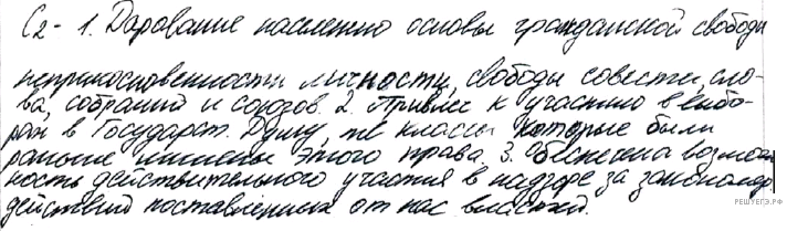1. Даровать населению незыблемые основы гражданской свободы на началах действительной неприкосновенности личности, свободы совести, слова, собраний и союзов.