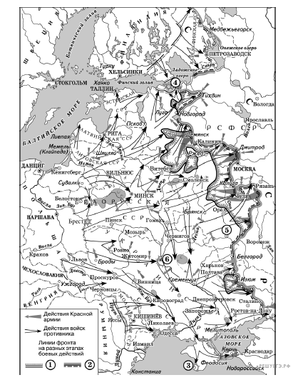 1. Город, обозначенный на схеме цифрой 5, дал название одной из крупнейших битв Великой Отечественной войны.
