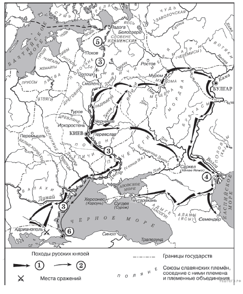 6. Киевский князь Олег совершил поход, обозначенный в легенде схемы цифрой 2.