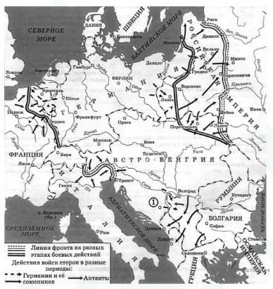 1) В этом же году, что и события показанные на схеме, Россия начала широкомасштабное наступление на Юго-Западном фронте.