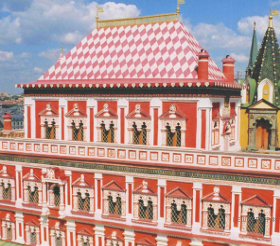 Какой из представленных ниже памятников архитектуры был создан до событий, юбилею которых посвящён почтовый блок? В ответе запишите цифру, которой обозначен этот памятник архитектуры. Укажите московского государя, в правление которого был воздвигнут данный памятник архитектуры.