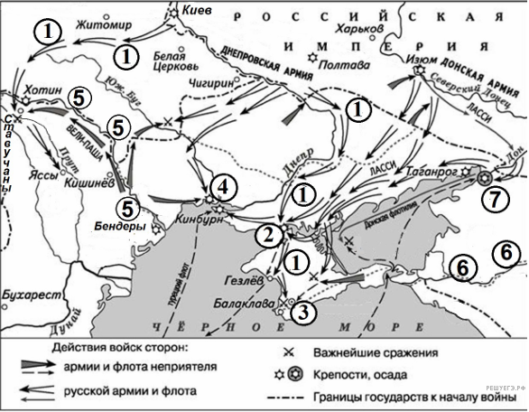 5) В ходе военных действий, обозначенных на схеме, русские войска переходили реку, течение которой обозначено на схеме цифрой «6».