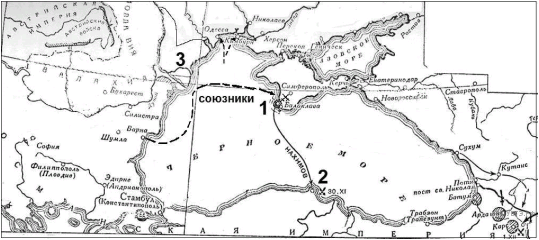 Прочтите текст о событиях, отражённых на схеме, и, используя схему, укажите название моря, которое пропущено в этом тексте.