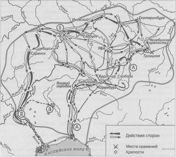 «Восставшие окружили Царицын, но город не сдавался: царицынский воевода рассчитывал на помощь стрельцов, которые шли на помощь осаждённым. Однако в городе вспыхнул бунт, он был захвачен, а воевода — убит. В Царицыне состоялся военный совет, на котором решили идти на юг, чтобы захватить стоящий в дельте Волги торговый город — ______________. Миновав Чёрный Яр, восставшие вскоре подошли к ______________ и при поддержке городской бедноты захватили город».