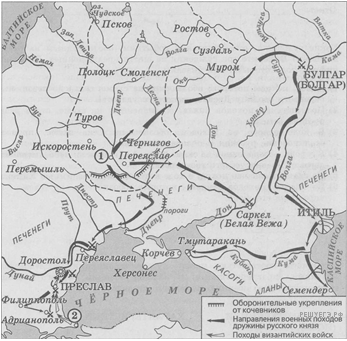 «Дружна князя разгромила Хазарию, созданную кочевым народом, в политической зависимости от которого находилась часть восточнославянских племенных союзов. В ходе предпринятых киевским князем походов был нанесен сокрушительный удар: он захватил и разорил главные его города Итиль, Семендер, Самкерц (русс. Тмутаракань) и Саркел, основав на месте последнего крепость ___________».