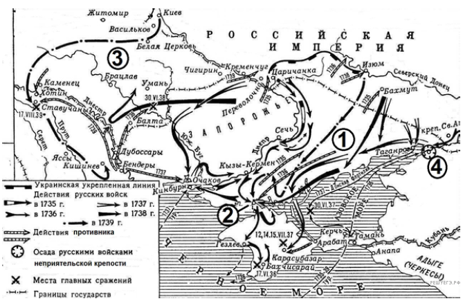«Армия под начальством Миниха в конце мая перешла польскую границу и в конце июля подошла к Пруту. Здесь у местечка Ставучан, возле Хотина, русское войско встретилось с османским