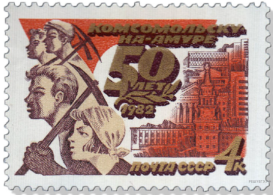 Назовите партийного и государственного деятеля, возглавлявшего партию и фактически возглавлявшего СССР в период, когда был основан город, юбилею которого посвящена данная марка. Используя изображение, приведите одно любое обоснование Вашего ответа.