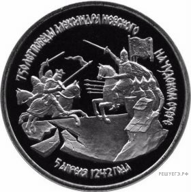 Юбилею какой крупной битвы в отечественной истории посвящена монета? Используя изображение, приведите одно любое обоснование Вашего ответа.