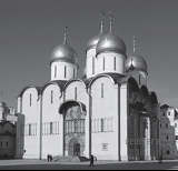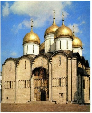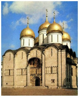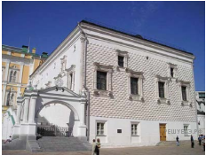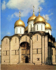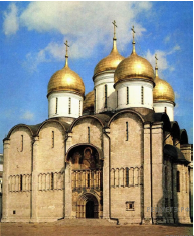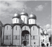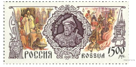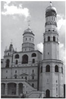 Какой из представленных ниже памятников архитектуры был создан до событий, юбилею которых посвящён почтовый блок? В ответе запишите цифру, которой обозначен этот памятник архитектуры. Укажите московского государя, в правление которого был воздвигнут данный памятник архитектуры.