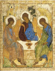Какое из произведений живописи посвящено событию, произошедшему в том же десятилетии, когда был основан город, юбилею которого посвящена марка? В ответе запишите цифру, которой обозначено это произведение живописи. Укажите художника, создавшего данное произведение живописи.