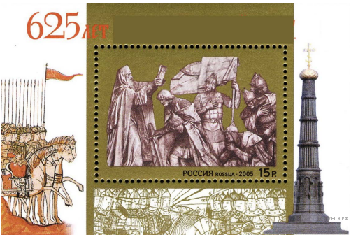 Какой памятник культуры был создан в течение полувека после события, юбилею которого посвящена марка? В ответе запишите цифру, которой обозначен этот памятник культуры. Укажите автора данного памятника культуры.