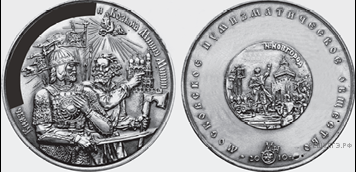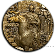 Какой памятник архитектуры был воздвигнут в течение ста лет после события, которому посвящена данная медаль? В ответе запишите цифру, которой обозначен этот памятник архитектуры. Укажите город, в котором он построен.