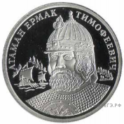 На какой из приведённых ниже монет изображён руководитель отряда казаков, который завоевал обширные территории? В ответе запишите цифру, которой обозначена эта монета. Назовите государство, которое он захватил, после чего оно было включено в состав России.