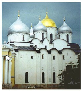 Какой из представленных ниже памятников архитектуры существовал на момент события, юбилею которого посвящена монета? В ответе запишите цифру, которой обозначен этот памятник архитектуры. Назовите князя, по распоряжению которого был создан данный памятник архитектуры.