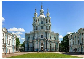 Создание какого из приведённых ниже памятников архитектуры приходится на царствование государя, правившего в период основания города, юбилею которого посвящена марка? В ответе запишите цифру, которой обозначен этот памятник архитектуры. Укажите архитектурный стиль, в котором он выстроен.