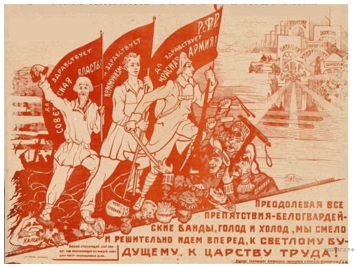 Укажите название исторического периода, когда мог быть выпущен данный плакат. Используя изображение, приведите одно любое обоснование Вашего ответа.