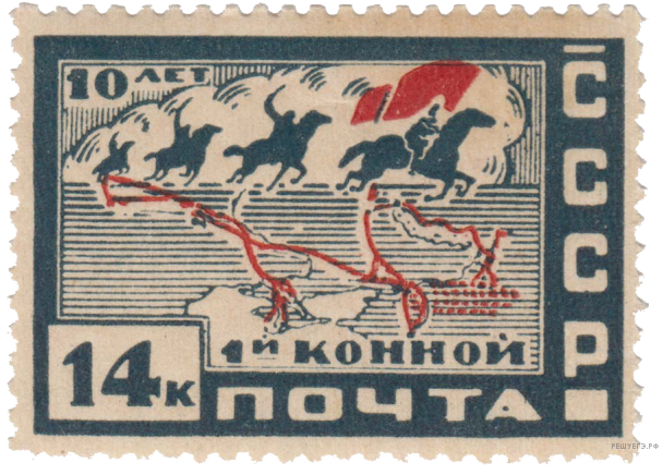 Укажите образное название исторической эпохи, в которую была выпущена данная марка. Используя изображение, приведите одно любое обоснование Вашего ответа.