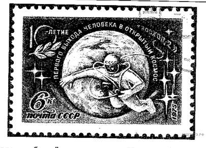 Назовите космонавта, изображённого на марке. Используя изображение, приведите одно, любое обоснование Вашего ответа.