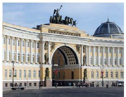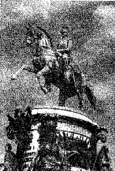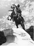 Укажите, какой памятник установлен в том же городе, что и ростральные колонны. Назовите монарха, при котором он был построен.