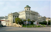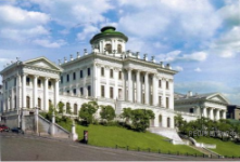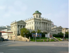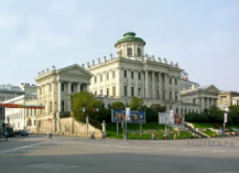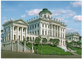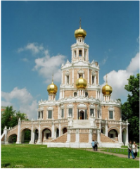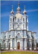 Какой из представленных ниже памятников архитектуры был создан в царствование императрицы, изображённой на марке? В ответе запишите цифру, которой обозначен этот памятник архитектуры. Укажите архитектурный стиль, в котором создан данный памятник архитектуры.