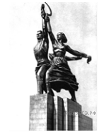 Какой из представленных ниже скульптурных памятников был создан после выпуска данной марки? В ответе запишите цифру, которой обозначен этот скульптурный памятник. Назовите скульптора, по проекту которого создан данный скульптурный памятник.