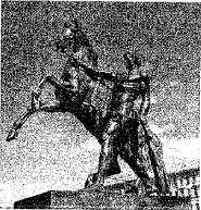 Создание какого памятника произошло в том же столетии, в которое произошло событие, юбилею которого посвящена данная марка? В ответе запишите цифру, которой обозначен этот памятник. Укажите фамилию скульптора — его автора.