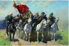 Укажите цифру, которой обозначен памятник культуры, посвященный событию, которое произошло в том же десятилетии, что и событие, которому посвящена марка из прошлого задания. Назовите художника, который является автором выбранной картины.