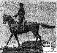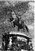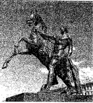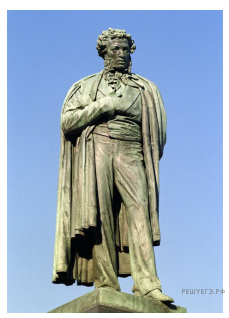 Какой из представленных ниже скульптурных памятников ещё не был создан в период, когда произошло событие, которому посвящена данная марка? В ответе запишите цифру, которой обозначен этот памятник скульптуры. Назовите исторического деятеля, которому посвящён этот скульптурный памятник.