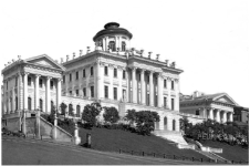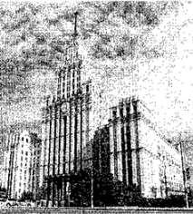 Укажите архитектурное сооружение, которое закончило строиться в десятилетие, когда была выпущена марка из предыдущего задания. Укажите, какой орган государственной власти размещен в нем, начиная с 1994 года. В ответ запишите цифру и название органа государственной власти.