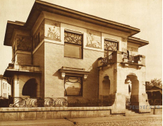 Какой из представленных ниже памятников архитектуры был создан в том же десятилетии, в котором была выпущена марка? В ответе запишите цифру, которой обозначен этот памятник архитектуры. Укажите название архитектурного стиля, в котором он выстроен.