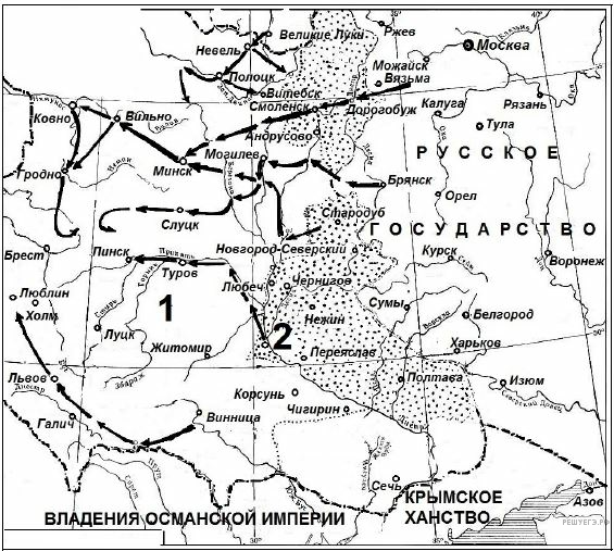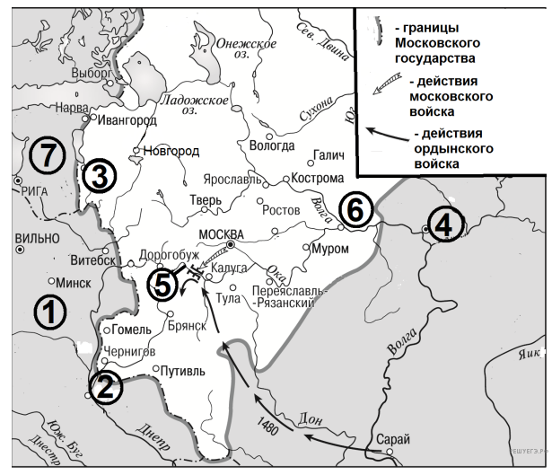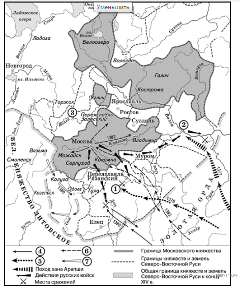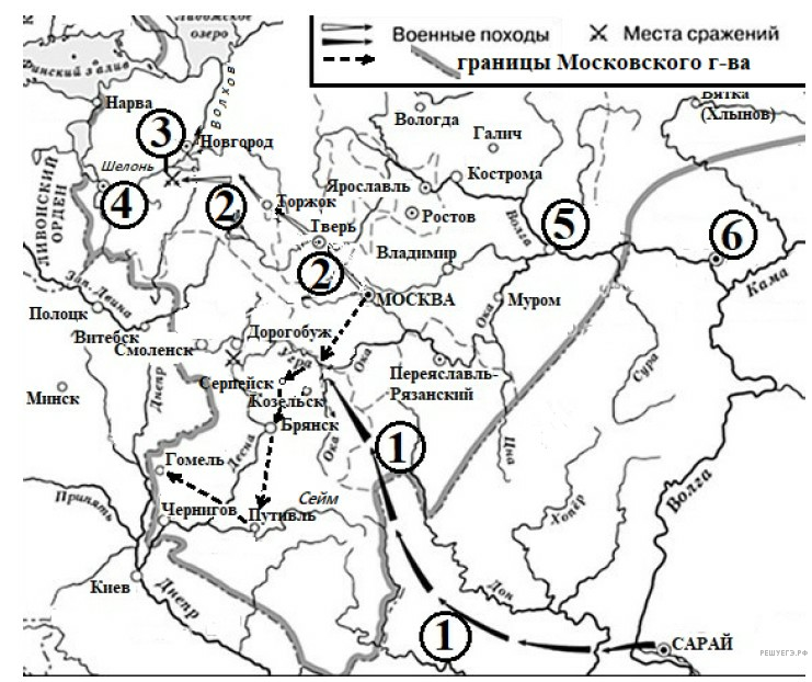 Назовите московского князя, возглавившего поход, обозначенный на схеме белыми стрелками.