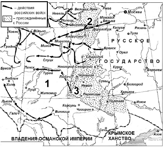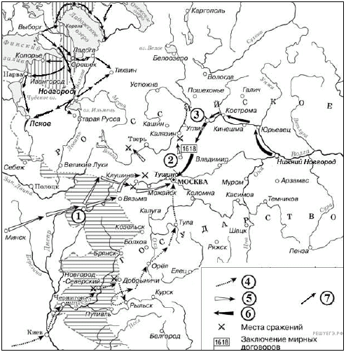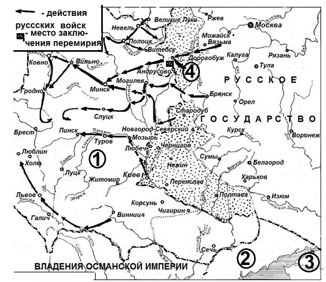 Заполните пропуск в предложении: «Вхождение в состав Российского государства города, обозначенного на схеме цифрой 6, было окончательно закреплено условиями «______________ мира» с Речью Посполитой».