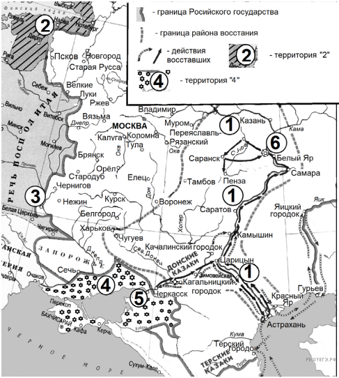 Напишите название города, обозначенного на схеме цифрой 3, в который был совершён карательный поход правительственных войск, сопровождавшийся массовыми убийствами.