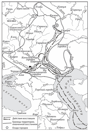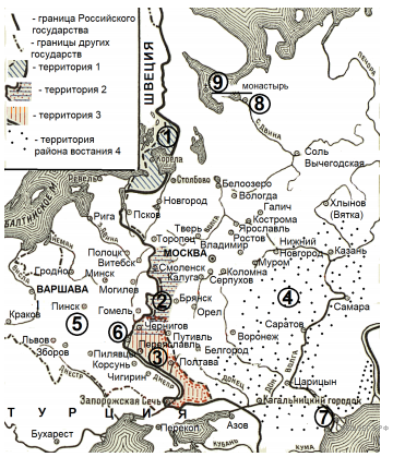 Назовите руководителя восстания, район которого обозначен на схеме.