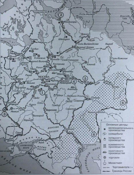Заполните пропуск в предложении: «Одна из крупнейших ярмарок России в XVII−XVIII вв. — _____________ — обозначена на схеме цифрой 4».