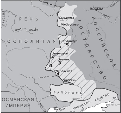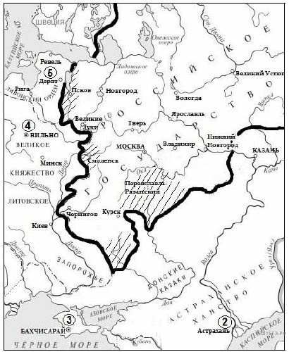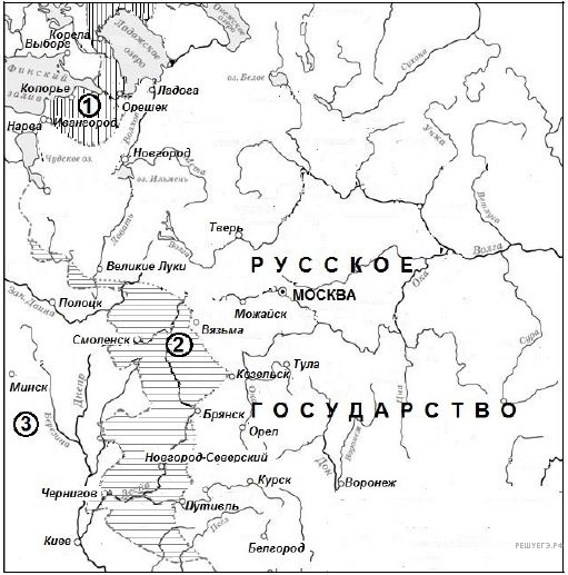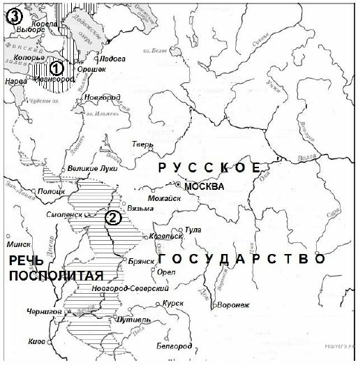 Напишите название государства, которому Русское государство уступало территорию, обозначенную на схеме цифрой 1.