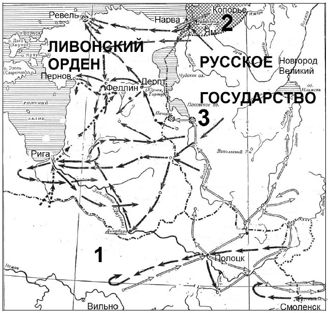 Напишите название древнего речного пути, обозначенного на схеме цифрой 2.