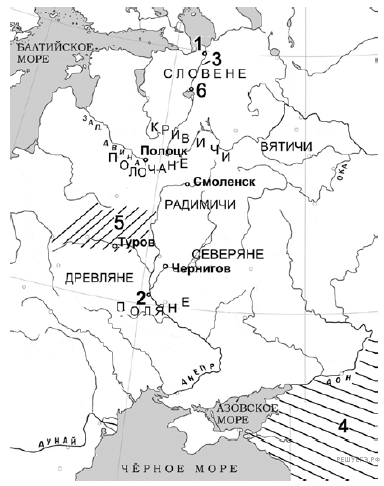 Напишите название союза восточнославянских племён, территория которого обозначена на схеме цифрой 5.